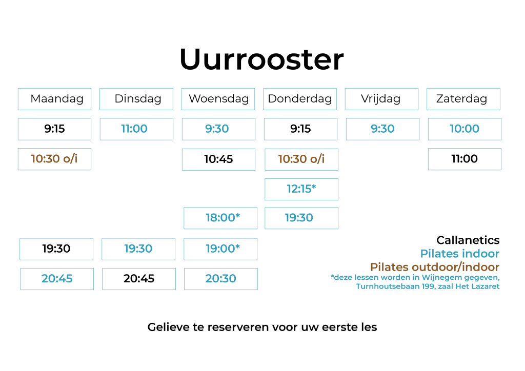 - Vele lesuren, enkel reservaties voor ’s avonds en zaterdag